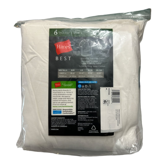 Hanes Men's 6-Pack Best Tagless Ring Spun Cotton Crewneck Short Sleeve T-Shirts (White, L)