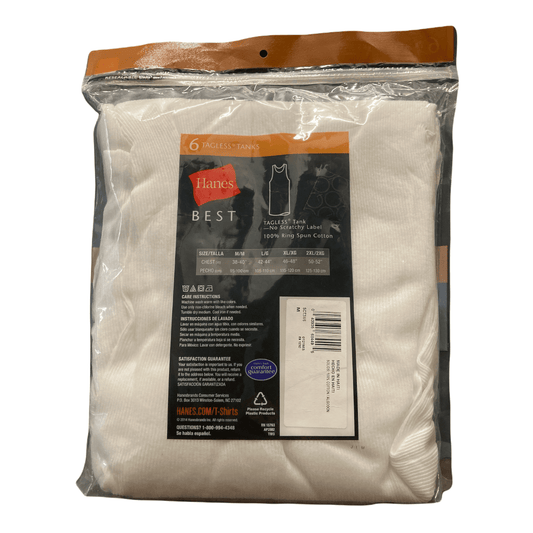 Hanes Best Men's Tagless 100% Cotton Tank Top 6 Pack (White, XL)