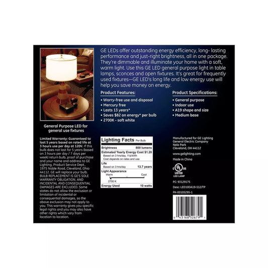 GE Soft White LED 60W Equivalent General Purpose A19 Light Bulbs (12 Pack)