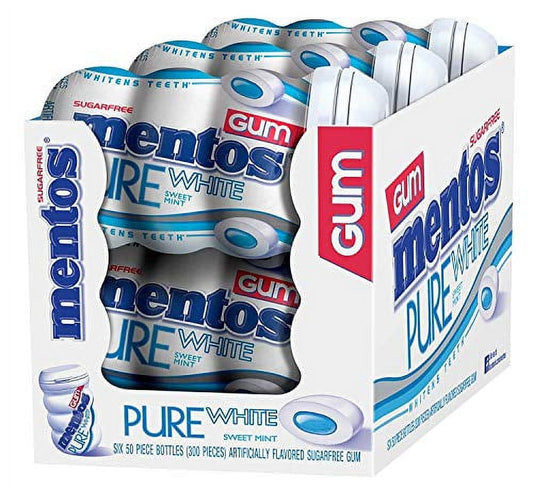 Mentos Pure Fresh Sugar-Free Chewing Gum, Sweet Mint, 50 Count, 6 Bottles (300 Regular Size Pieces)