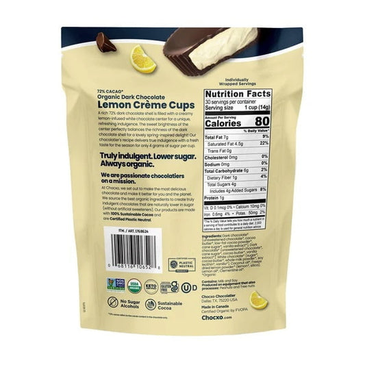 ChocXO Organic Dark Chocolate Lemon Creme Cups, 14.8 Ounce