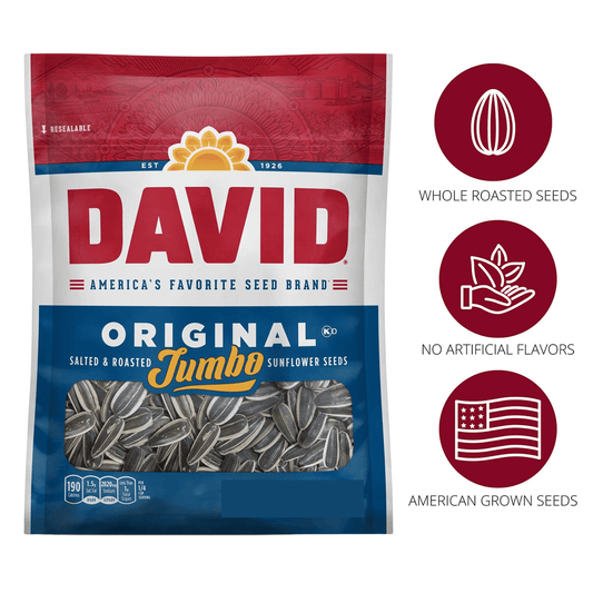 David Seeds Roasted and Salted Original Jumbo Sunflower Seeds, Gluten Free & Keto Friendly Seeds Snacks Great for On-the-Go Snacking Movie Nights Camping Picnic Halloween Trick or Treats 3.75oz- 2PK